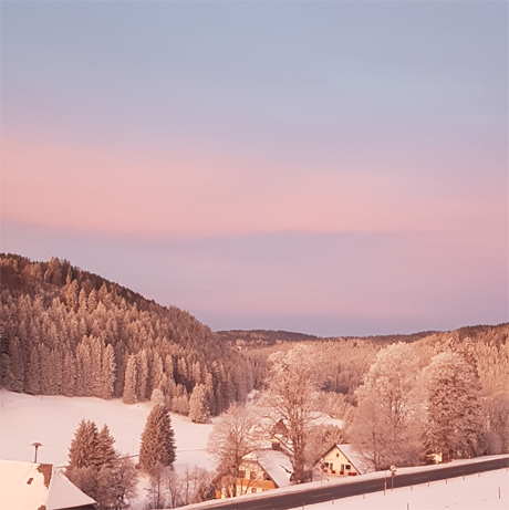 Ausblick aus der Ferienwohnung auf die Loipe in Saig-Mühlingen